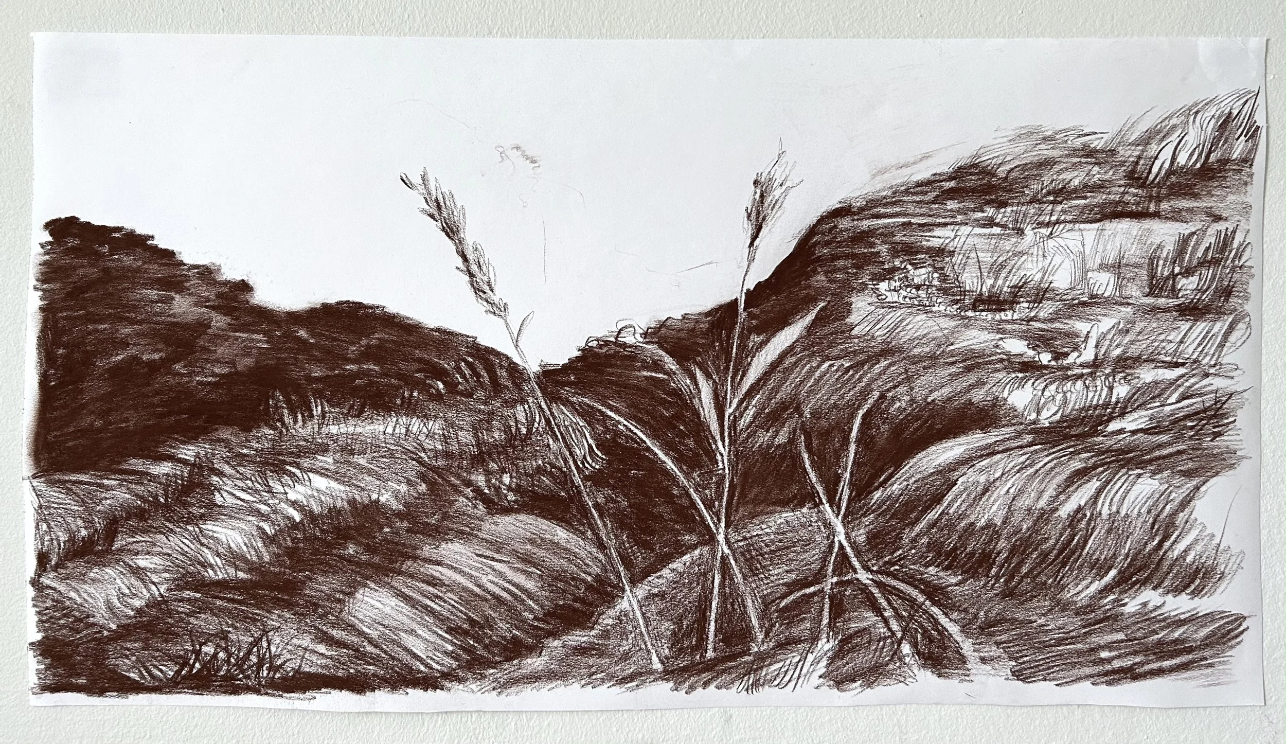 Wide Hills, 13” x 24”, Charcoal on Paper, 2025